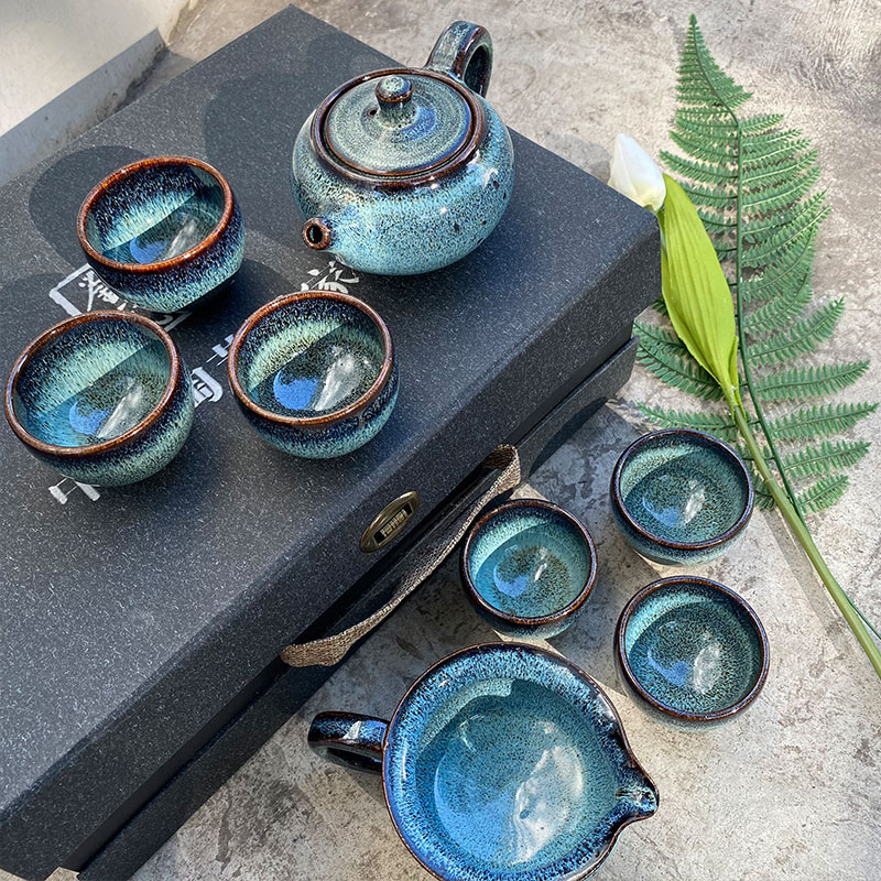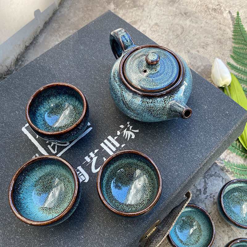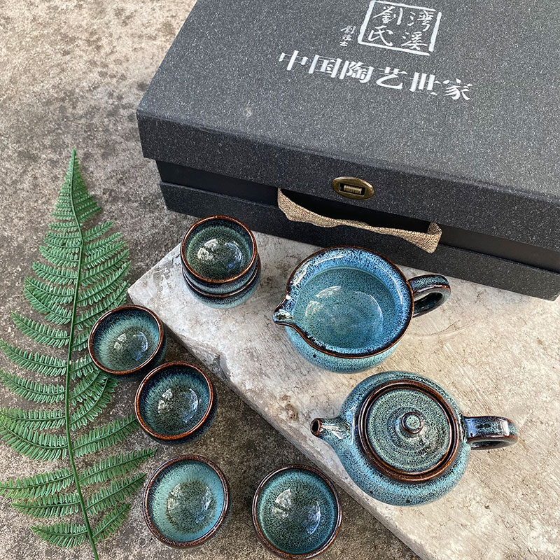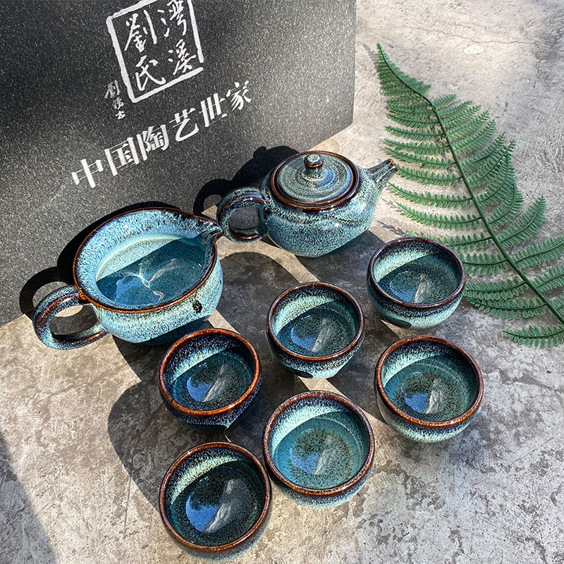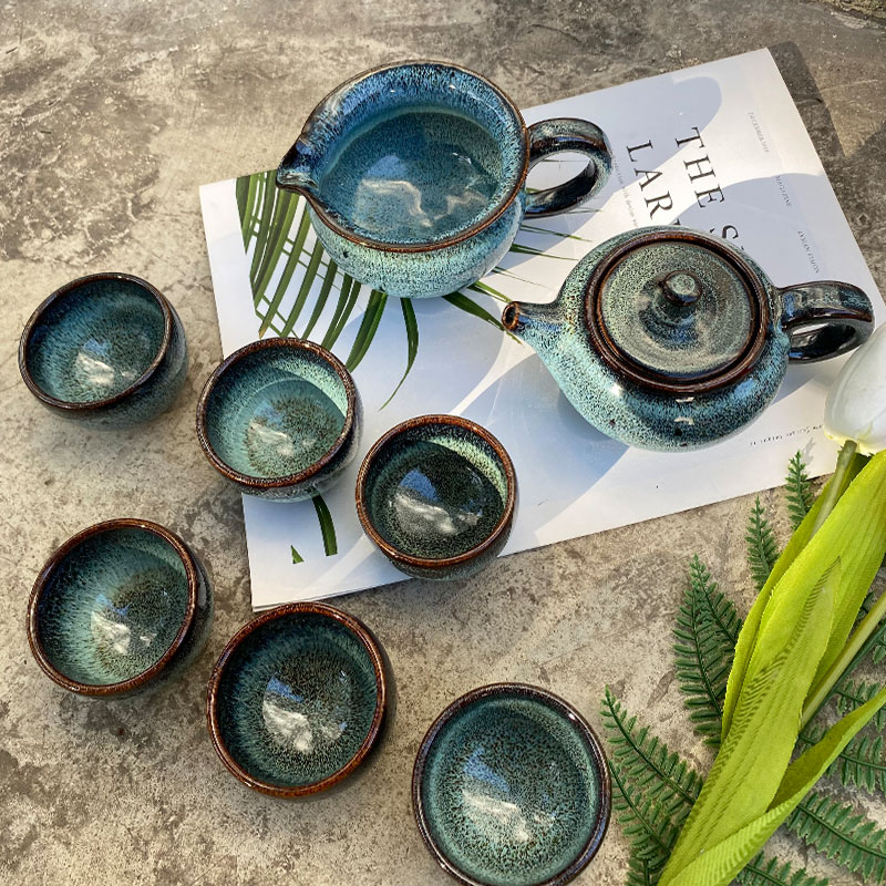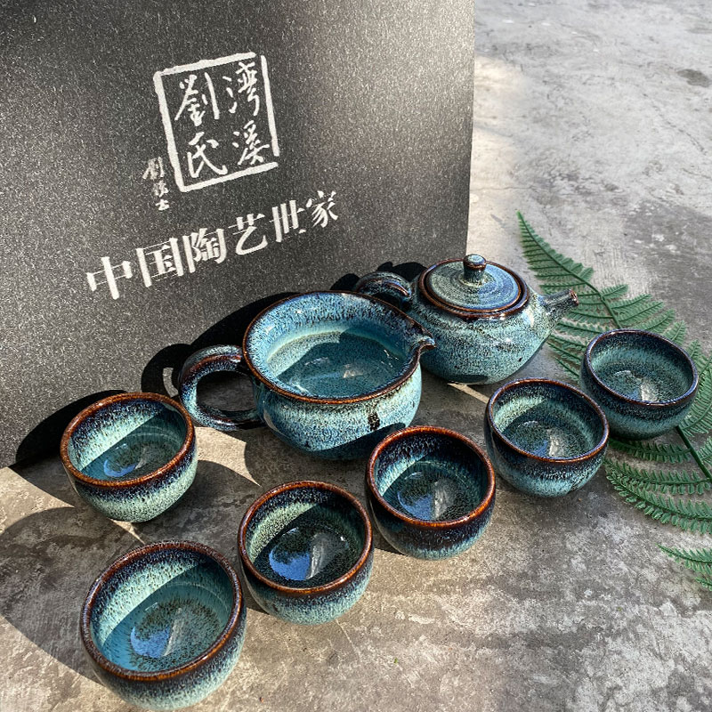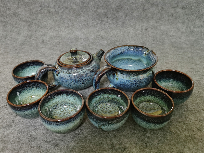 『蓝坤』石湾陶瓷茶具八件套
