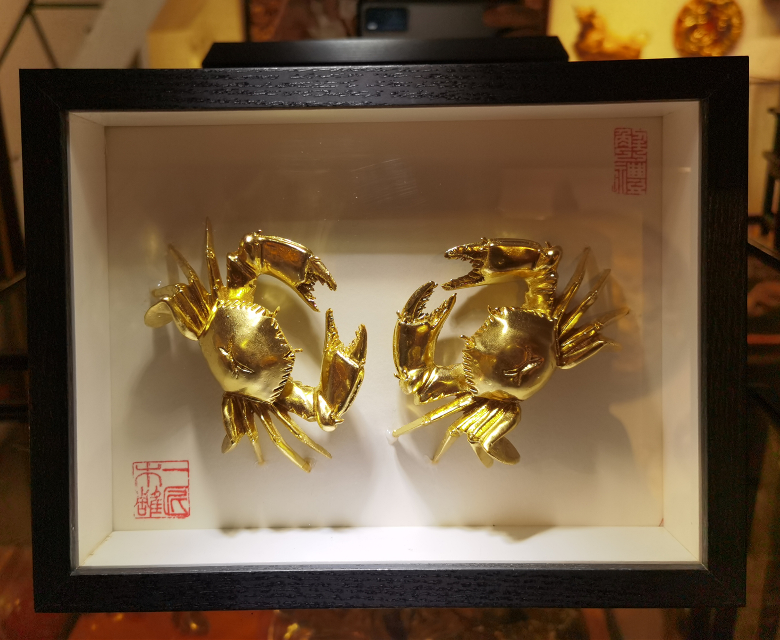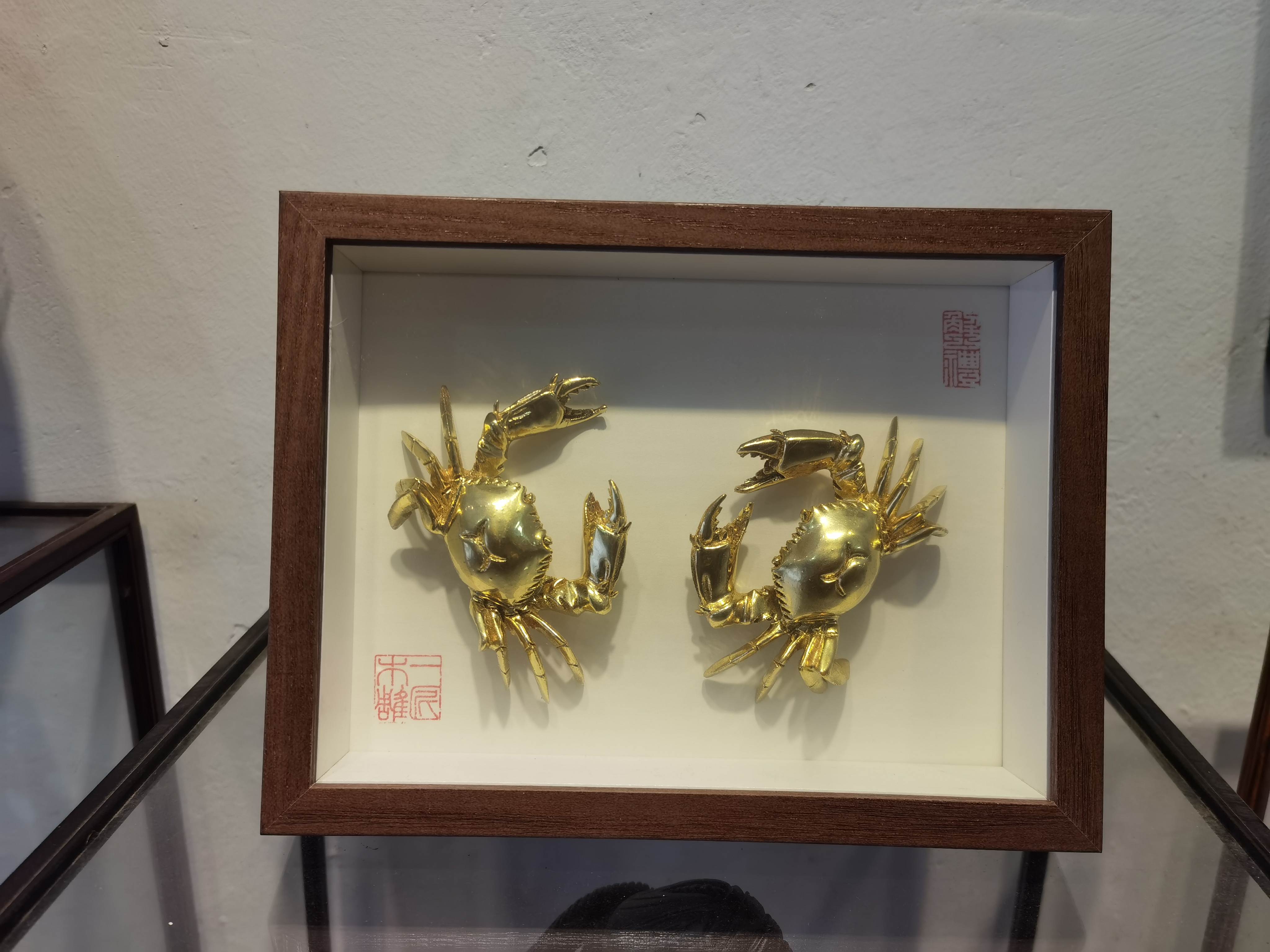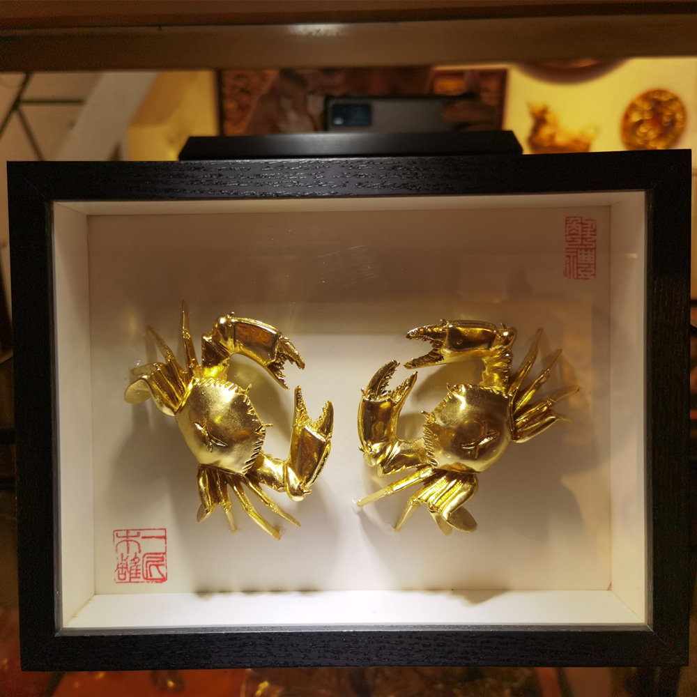 材质香樟木, 金漆木雕,经过制漆、滤漆、填料、上漆、干固、贴金6道工序髹漆贴金装饰,器物具有金碧辉煌、豪华富丽的装饰效果。单只尺寸17*12cm ,双只尺寸22*17cm